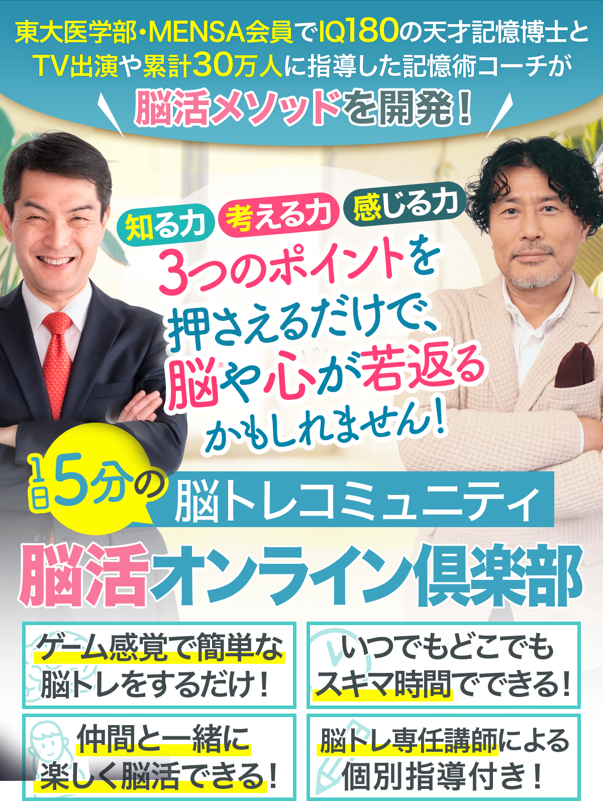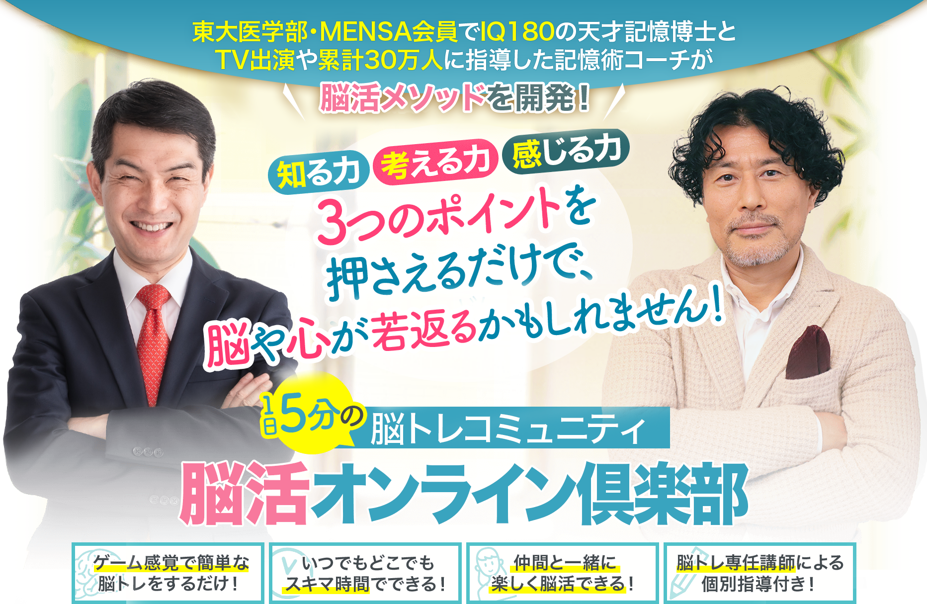 しかし、脳活オンライン倶楽部は、長く続けていただき、いつまでも若々しい脳と心を手にしていただきたいという思いから、お得にご参加いただけるようにしました。