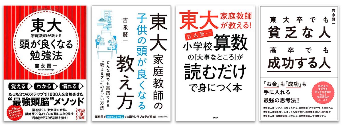 その後、幾つものベストセラー書籍を世に出し、著書は累計20万部を超える。32年にわたる指導の下、多くの生徒が東京大学への合格、国家資格の取得、語学の習得などの目標を達成。さらに、収入の増加やキャリアの向上といった人生の大きな変革をもたらしてきた。